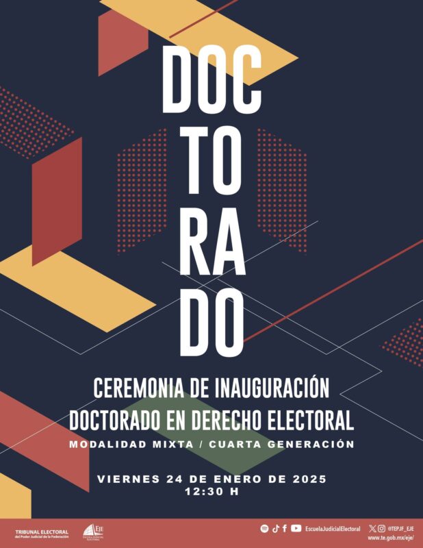 Tribunal Electoral del Poder Judicial de la FederaciónInfografías ¡Mañana es el gran día! Inauguramos el #Doctorado en Derecho Electoral. ¡Sé parte de esta comunidad de expertos! Sigue la transmisión en vivo y descubre cómo formar parte de las próximas generaciones. Por Araceli Bastida - enero 23, 2025 0 FacebookTwitterPinterestLinkedinReddItEmailWhatsAppTelegramVK