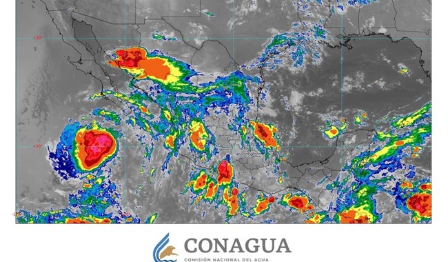 Debido a las bandas nubosas del sistema, continuarán las lluvias fuertes (de 25 a 50 milímetros), así como rachas de viento de 40 a 60 km/h y oleaje de 2 a 3 metros de altura en la costa occidental de Baja California Sur.