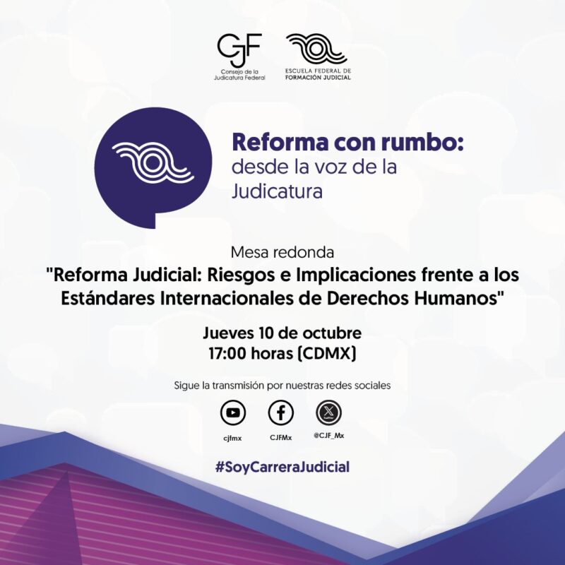 Consejo de la Judicatura FederalInfografías Mesa Redonda | Reforma Judicial: Riesgos e Implicaciones frente a los Estándares Internacionales de Derechos Humanos. Por Araceli Bastida - octubre 8, 2024 0 FacebookTwitterPinterestLinkedinReddItEmailWhatsAppTelegramVK