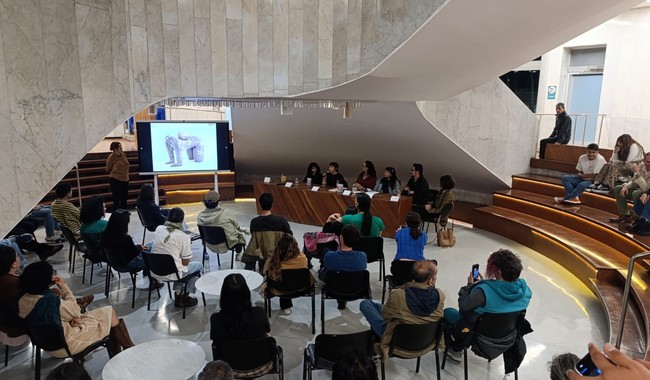 La curadora de la muestra, Katnira Bello, destacó la lucha de las mujeres por ganar espacios en los que puedan trabajar y exhibir su obra, y agradeció la presencia de las artistas por compartir con el público sus procesos creativos y de producción. En la charla también participó Chantal Couttolenc, quien habló sobre la obra de su madre, la pintora y escultora Yvonne Domenge, fallecida en 2019.