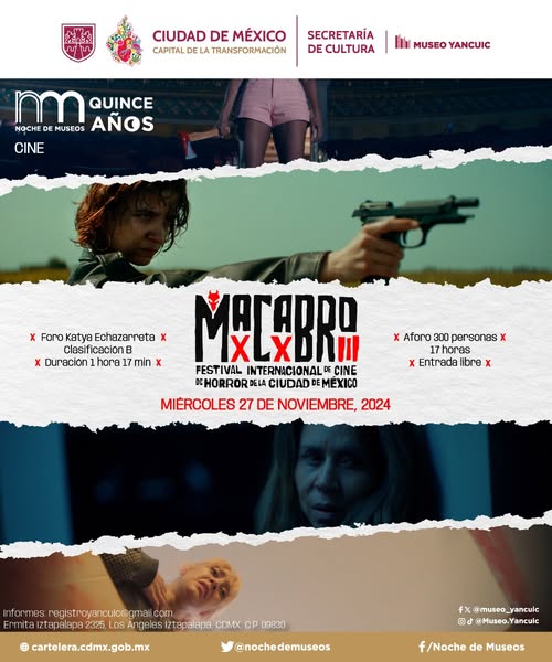 En otros puntos de la ciudad, el Museo Yancuic dará un maratón de terror en el Foro Katya Echazarreta, con una selección especial de la vigésimo tercera edición de Macabro Festival Internacional de Cine de Horror de la Ciudad de México, el cual iniciará a las 17 horas.