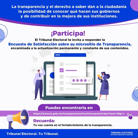 Inicio Tribunal Electoral del Poder Judicial de la Federación Infografías ¡Nos interesa #EscucharTE! Participa en la encuesta de satisfacción sobre nuestro micrositio...