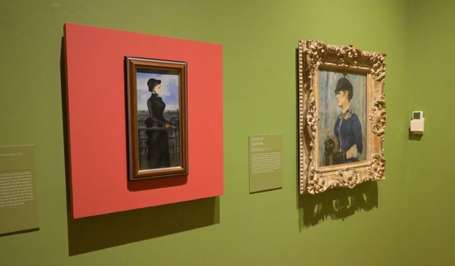 Entre los retratos, por un lado, están Félix Parra y Édouard Manet; por otro, Amadeo Modigliani y Diego Rivera. Las obras de la primera dupla, Dama en balcón (Parra, 1880) y Joven con sombrero redondo (Manet, ca. 1877-1879), retratan a mujeres de perfil, portando un sombrero y, aunque también comparten las tonalidades frías, los estilos y los detalles, ofrecen lecturas distintas.