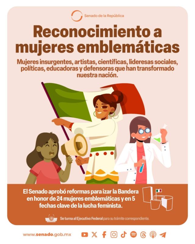 Para que los nombres de grandes mujeres se incluyan a fechas para izar la Bandera Nacional de los Estados Unidos Mexicanos a media y toda asta, a fin de reconocerles su aportación a la patria, se aprueba reformar por unanimidad, con 102 votos a favor, la Ley sobre el Escudo, la Bandera y el Himno Nacionales.