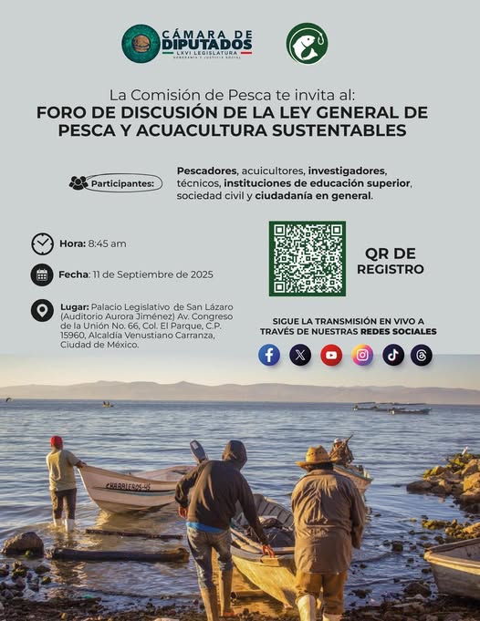 Participa en el “Foro de Discusión de la Ley General de Pesca y Acuacultura Sustentables”, un espacio de diálogo para fortalecer el desarrollo sostenible del sector pesquero y acuícola.