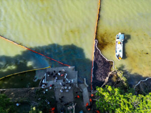 También, se encuentran en proceso las maniobras de succión y retiro del hidrocarburo contenido en las barreras, utilizando el camión full desplegado en la comunidad de Casa Blanca, así como equipos adicionales de alta capacidad para su recolección y transporte seguro.