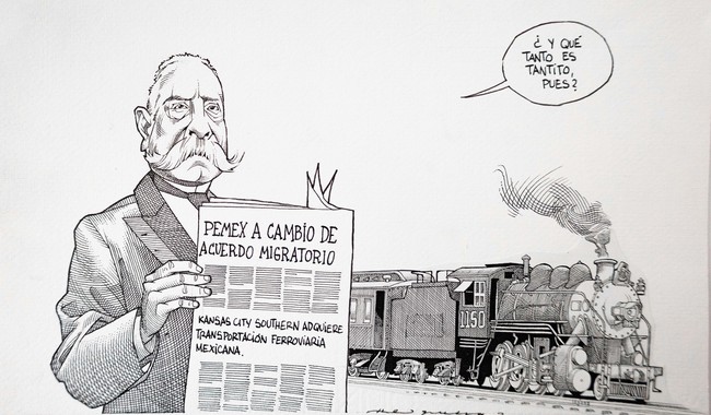 - A través de la obra del caricaturista, se pone la mirada en los medios de transporte como metáfora del poder, el progreso y las tensiones sociales en la historia reciente de México