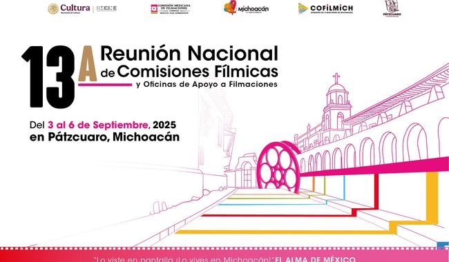 El Instituto Mexicano de Cinematografía (IMCINE), en el marco del 30 aniversario de la Comisión Mexicana de Filmaciones (COMEFILM), en colaboración con la Secretaría de Turismo de Michoacán, el municipio de Pátzcuaro y la Comisión de Filmaciones de Michoacán, realizará la 13ª Reunión Nacional de Comisiones Fílmicas y Oficinas de Apoyo a Filmaciones.