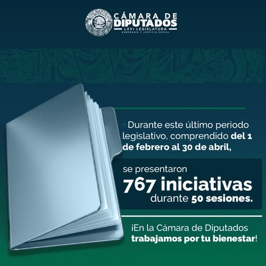 Porque en la #LXVILegislatura de la Cámara de Diputados trabajamos por tu bienestar, durante el último periodo legislativo las y los legisladores presentaron 767 iniciativas para reformar diversos ordenamientos legales.