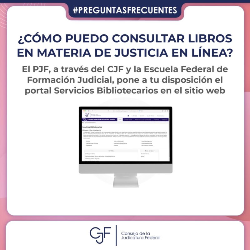 Consejo de la Judicatura FederalInfografías #PreguntasFrecuentes | Aquí puedes consultar libros en materia de justicia en formato digital. Por Araceli Bastida - febrero 25, 2025 0 FacebookTwitterPinterestLinkedinReddItEmailWhatsAppTelegramVK