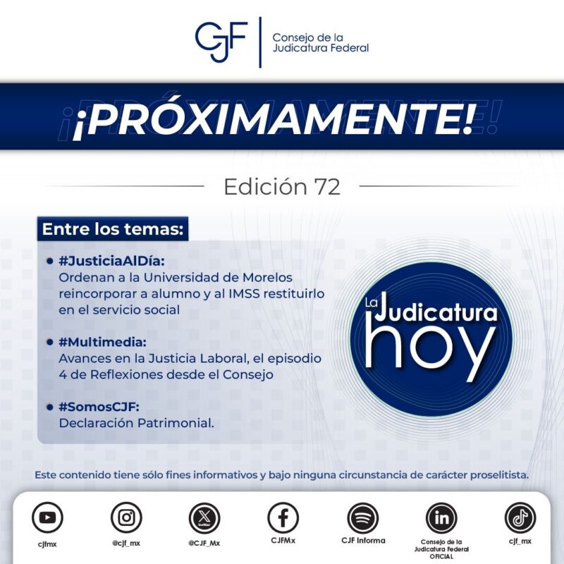 ¡Prepárate! Esta semana llega la edición 72 de #LaJudicaturaHoy.