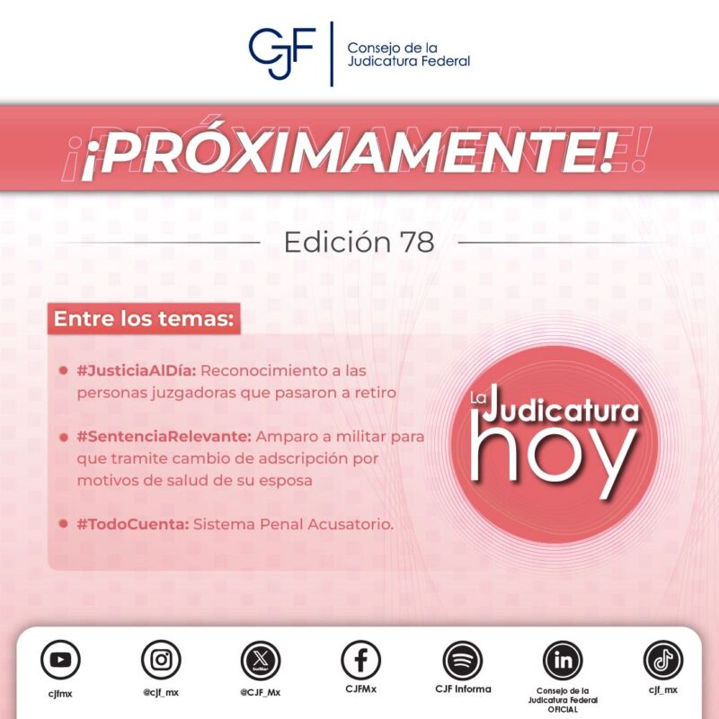 ¡Prepárate! Esta semana llega la edición 78 de #LaJudicaturaHoy con sentencias destacadas, eventos y mucho más