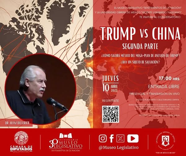 Prepárate para el conversatorio: Trump vs China, segunda parte. Exploraremos cómo México podría enfrentar el mega-plan de anexión de Trump y debatiremos si existe un sujeto de salvación.