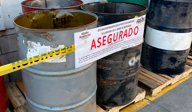Profepa asegura 385 tambos con residuos no identificados a la empresa La Fama, en Michoacán