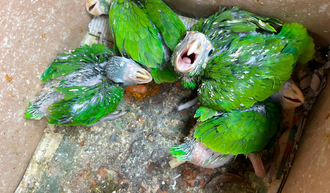 Personal de la Profepa en Oaxaca aseguró a cinco ejemplares de vida silvestre: una guacamaya, Ara macao, y cuatro polluelos de loro, Amazona, listados en la NOM-59-SEMARNAT-2010 y en la CITES a un vendedor. El comerciante fue puesto a disposición de la Fiscalía General de la República.