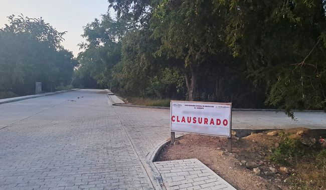 Al no exhibirse la Autorización en Materia de Impacto Ambiental emitida por la Secretaría de Medio Ambiente y Recursos Naturales (Semarnat), se impuso como medida de seguridad la clausura total temporal del proyecto, con el fin de prevenir mayores daños al medio ambiente.