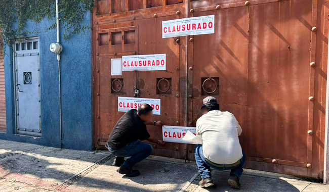 El 12 de diciembre, personal la Profepa acudió al sitio, donde, aunque el predio se encontraba cerrado, se constató desde el exterior el suelo natural con manchas negras varios, tambos metálicos de 200 litros de capacidad, al parecer con aceite lubricante gastado, bolsas de plástico con estopas y envases de plástico impregnados con aceite y/o grasa, lámparas fluorescentes y filtros de aceite usados. Al existir un riesgo inminente al medio ambiente y a la población, se procedió a la clausura.