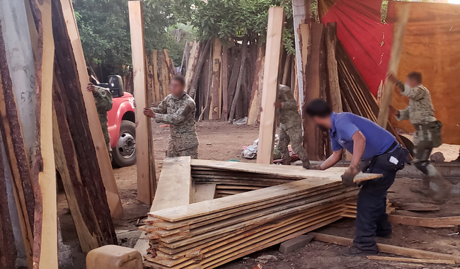 Participan 150 elementos del Ejército Mexicano, la Guardia Nacional y Seguridad Pública, se trata de un operativo sin precedente en esta entidad. Aseguran nueve maquinarias y 11 m3 de madera aserrada de pino.