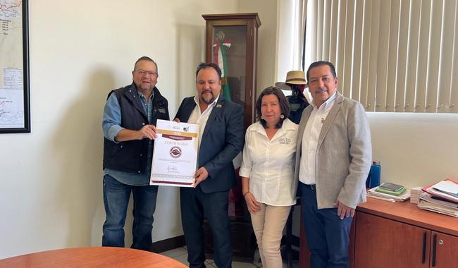 Personal de la Profepa entregando certificado a representantes de la empresa.