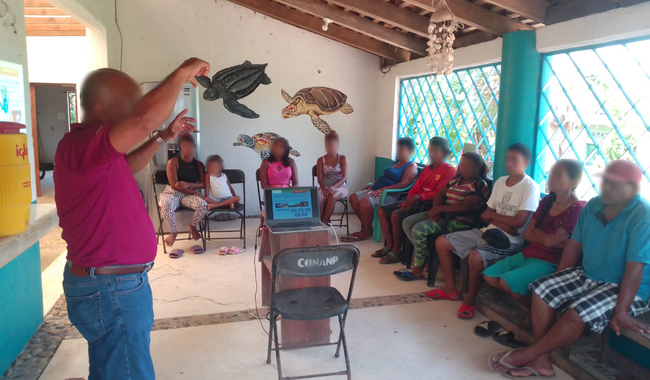 Foto 2. Inspector de la Profepa impartiendo capacitación sobre tortugas marinas.