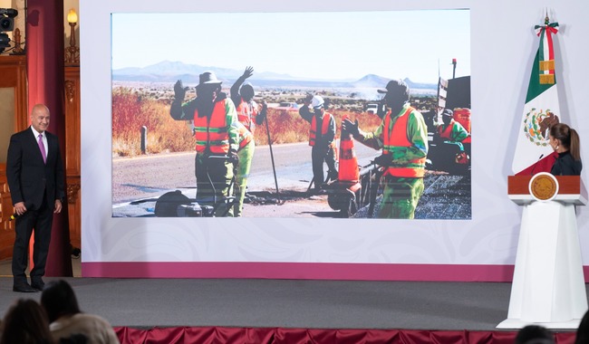 Ante la Presidenta Claudia Sheinbaum, el secretario Jesús Antonio Esteva Medina informó que se intervendrán 18 mil km de la Red Carretera Federal Libre de Peaje • Se dotará de 11 nuevos trenes de repavimentación para atender a todas las entidades del país, que se sumarán a los 20 ya en operación