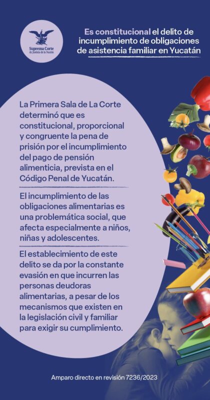 Suprema Corte de Justicia de la NaciónInfografías Protege el cumplimiento de las obligaciones de asistencia familiar. Por Araceli Bastida - febrero 28, 2025 0 FacebookTwitterPinterestLinkedinReddItEmailWhatsAppTelegramVK