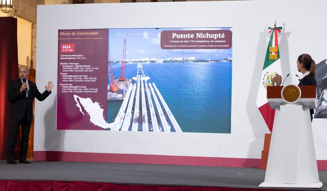 Los caminos artesanales, desarrollados en coordinación con el Instituto Nacional de los Pueblos Indígenas, también muestran avances en Durango y Oaxaca. “Este año traíamos 112 caminos, subimos a 135. En total serán 2 mil 100 kilómetros en toda la administración”, añadió.