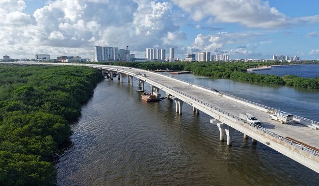 Esta emblemática obra que cruza el sistema lagunar Nichupté, será uno de los puentes más largos de América Latina sobre una laguna y servirá como ruta alterna en caso de emergencias o desastres naturales.