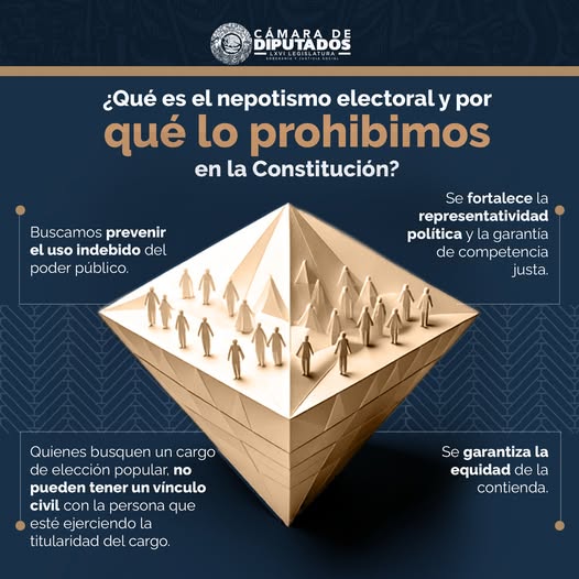 Camara de DiputadosInfografías ¿Qué es el nepotismo electoral y por qué lo prohibimos en la Constitución? A través de esta reforma buscamos prevenir el uso indebido del poder público. Por Araceli Bastida - abril 23, 2025 0 FacebookTwitterPinterestLinkedinReddItEmailWhatsAppTelegramVK