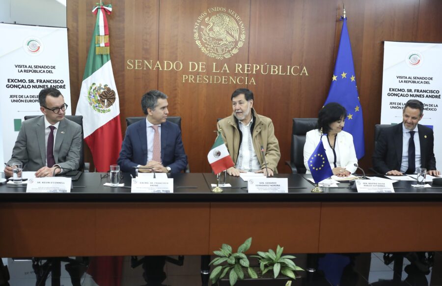El presidente de la Mesa Directiva, Gerardo Fernández Noroña, y el embajador de la Unión Europea en México, Francisco André, coincidieron en que se tiene que concretar, en los próximos meses, la actualización del Acuerdo Global de Asociación Económica, Concertación Política y Cooperación, para sumar esfuerzos y hacer frente a la actual incertidumbre internacional.
