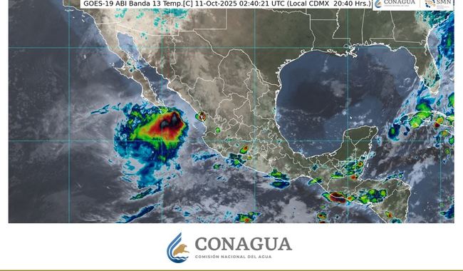 El sistema mantendrá lluvias intensase en Jalisco, Colima y Michoacán; muy fuertes en Nayarit, y fuertes en Baja California Sur y Sinaloa.