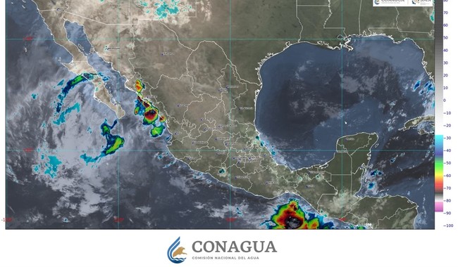 Generará también viento de 40 a 50 km/h con rachas de 60 a 80 km/h en la costa sur de Baja California Sur; de 30 a 40 km/h con rachas de 50 a 70 km/h en costas de Nayarit y Sinaloa, y de 20 a 30 km/h con rachas de 40 a 50 km/h en Baja California, Chihuahua y el sur de Sonora.