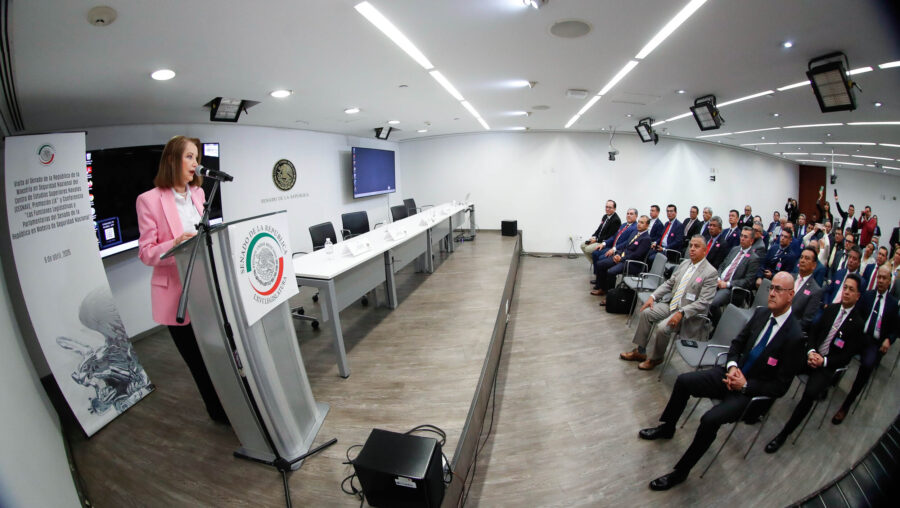 La presidenta del Senado de la República, Laura Itzel Castillo Juárez, entregó reconocimientos a discentes de la maestría de Seguridad Nacional del Centro de Estudios Superiores Navales (CESNAV), de la Secretaría de Marina, que organizó el presidente de la Comisión de Marina, Carlos Lomelí Bolaños.