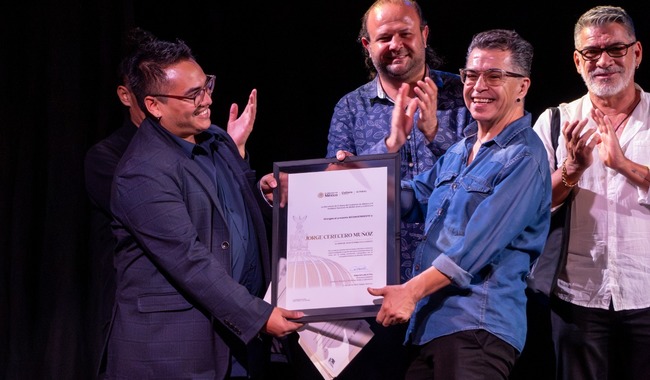 “Hoy reconocemos a un bailarín, coreógrafo y profesor que es artífice indispensable de la danza en el estado de Michoacán: Jorge Cerecero, un creador que ha sabido combinar su labor como intérprete, coreógrafo y formador, dejando una huella tangible tanto en el desarrollo de nuevas propuestas artísticas como en la formación de generaciones de bailarines de Michoacán para México y el mundo”, aseveró el Dr. Alarcón Múgica.