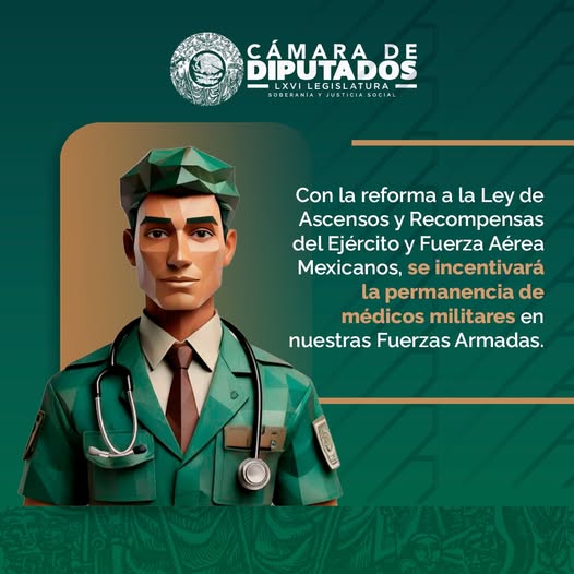 #ReformaAprobada | ¿Sabías que tus diputadas y diputados avalamos una reforma que incentiva la permanencia de médicos militares en las Fuerzas Armadas? #LXVILegislatura