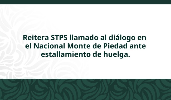La Secretaría del Trabajo y Previsión Social reitera su disposición para colaborar con ambas representaciones en encontrar a la brevedad soluciones a este conflicto, respetando los derechos de las y los trabajadores y procurando la viabilidad de una institución emblemática de México como es Nacional Monte de Piedad.