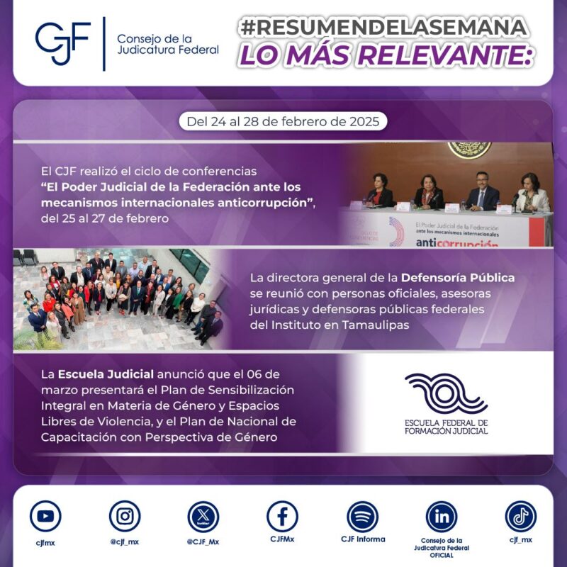 Consejo de la Judicatura FederalInfografías #ResumenDeLaSemana | Estás son las actividades más relevantes que se realizaron en el #CJF Por Araceli Bastida - febrero 28, 2025 0 FacebookTwitterPinterestLinkedinReddItEmailWhatsAppTelegramVK
