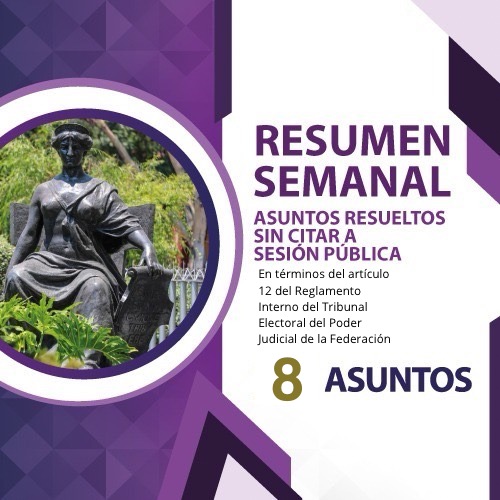 #ResumenSemanal En la semana del 13 al 19 de diciembre, el Pleno de la #SalaSuperior del #TEPJF resolvió 8 asuntos sin citar a sesión pública.