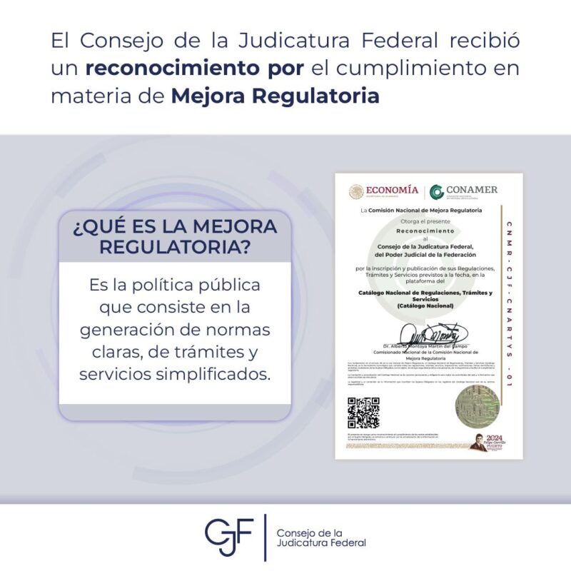 Consejo de la Judicatura FederalInfografías ¿Sabes qué es la Mejora Regulatoria? Aquí te contamos más sobre este reconocimiento que la #CONAMER entregó al #CJF Por Araceli Bastida - noviembre 22, 2024 0 FacebookTwitterPinterestLinkedinReddItEmailWhatsAppTelegramVK