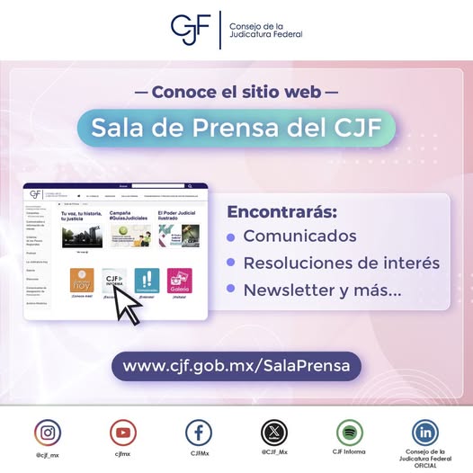 #SalaDePrensa | Consulta los comunicados, novedades e información más relevante del #CJF en un solo lugar.