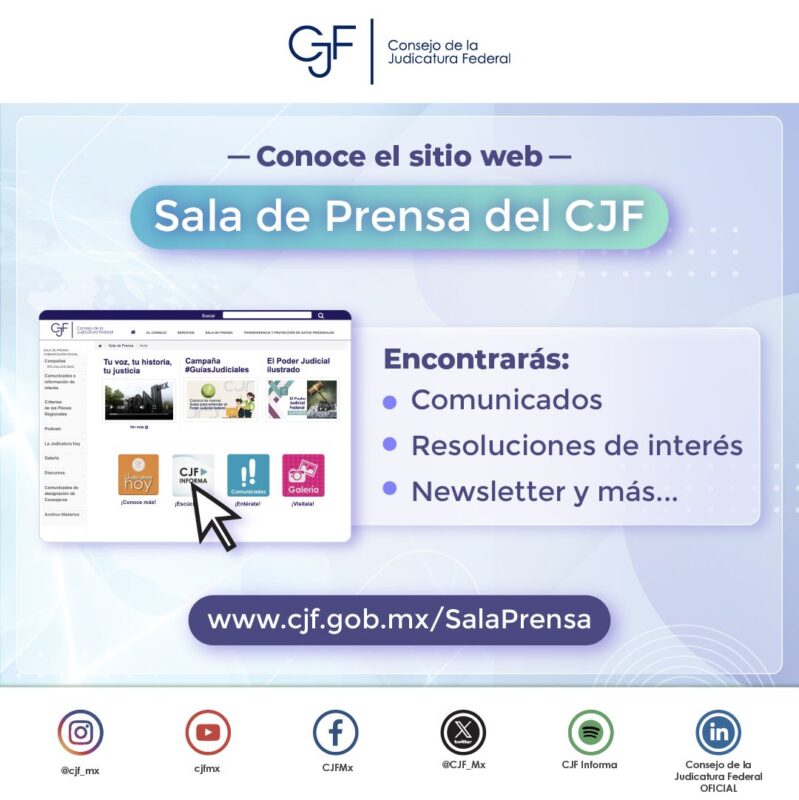#SalaDePrensa es el sitio donde encuentras toda la información periodística y editorial sobre el #CJF de manera rápida y sencilla
