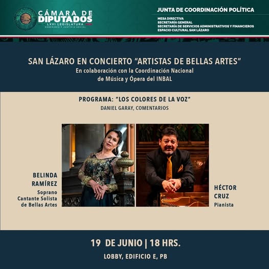 #SanLázaroEnConcierto | Acompáñanos al concierto “Los colores de la voz”, con la soprano Belinda Ramírez y el pianista Héctor Cruz.