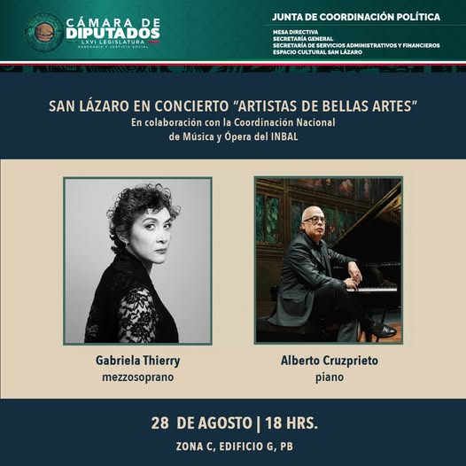 #SanLázaroEnConcierto | Disfruta del concierto Artistas de Bellas Artes, con la presentación de Gabriela Thierry (mezzosoprano) y Alberto Cruzprieto (piano).