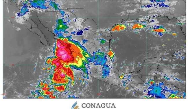 Los desprendimientos nubosos del sistema originarán lluvias muy fuertes (de 50 a 75 milímetros [mm]), rachas de viento de 50 a 70 km/h y oleaje elevado de 2.5 a 3.5 metros de altura en costas de Jalisco, Colima, Michoacán y el sur de Nayarit, extendiéndose al sur de Baja California Sur, durante la noche de hoy.