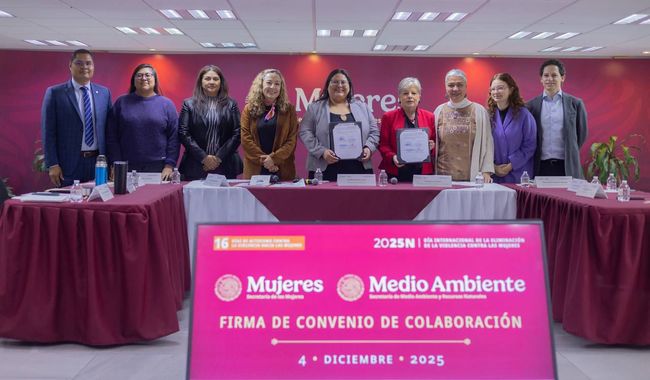 Esta colaboración, que tendrá vigencia hasta 2030 y que se enmarca en los 16 días de activismo en el marco del 25N, busca también prevenir las violencias en contra de las mujeres, adolescentes, niñas y niños en el sector ambiental, e impulsar la participación de las mujeres en la protección, conservación y aprovechamiento sustentable del medio y los recursos naturales.