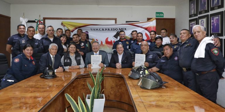TOLUCA, Estado de México. – Norberto Morales Poblete, Secretario del Trabajo estatal formalizó la entrega de la Toma de Nota al Sindicato de Vanguardia del Heroico Cuerpo de Bomberos, Paramédicos y Rescatistas del Estado de México, a partir de este acto, la organización cuenta con el reconocimiento oficial ante las autoridades laborales del Estado de México.