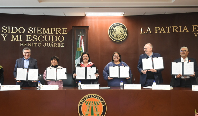 El Convenio estuvo encabezado por la magistrada presidenta del Tribunal Superior Agrario, Claudia Dinorah Velázquez González, quien destacó que este acto representa una respuesta institucional a una deuda histórica; asimismo subrayó la resiliencia y dignidad de las mujeres del campo, destacando que “la tierra no tiene género, pero la injusticia sí”. “Pasamos de la omisión al reconocimiento, de la desigualdad al acceso, del abandono a la escucha. La justicia agraria, hoy más que nunca también tiene rostro de mujer.”