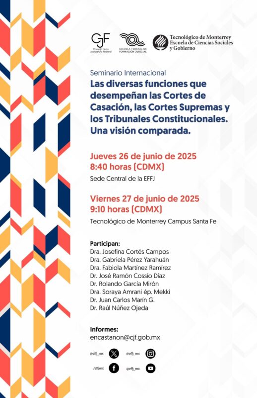 Consejo de la Judicatura FederalInfografías Seminario Internacional Las diversas funciones que desempeñan las Cortes de Casación, las Cortes Supremas y los Tribunales Constitucionales. Una visión comparada. Por Araceli Bastida - junio 25, 2025 0 FacebookTwitterPinterestLinkedinReddItEmailWhatsAppTelegramVK