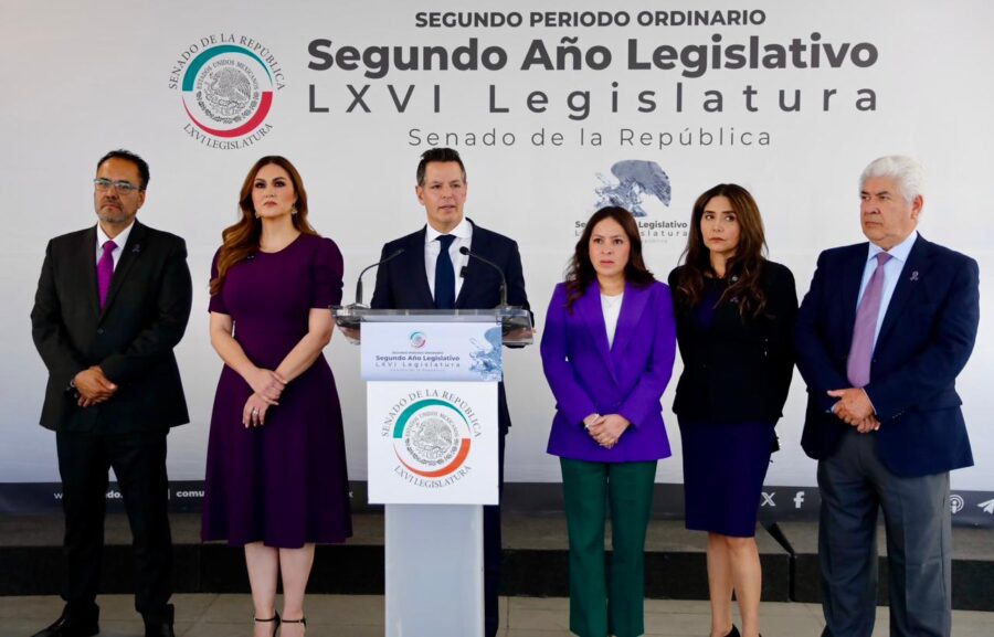 En la conferencia de prensa acompañaron al senador las senadoras Geovanna Bañuelos, Karen Castrejón y Alejandra Barrales, así como los senadores Francisco Ramírez Acuña y Juan Carlos Loera de la Rosa.