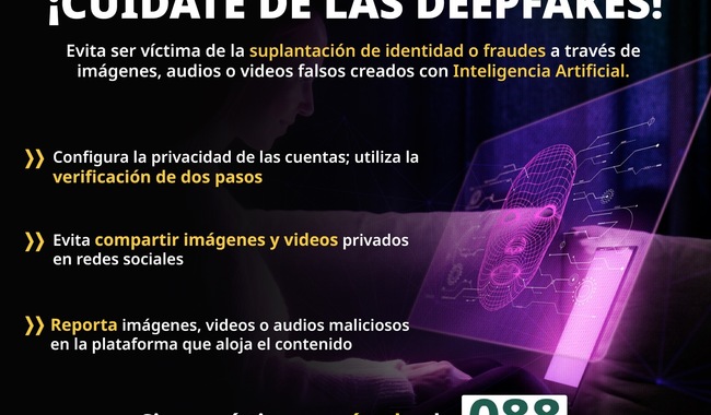 El incremento en la difusión de imágenes, audios y videos falsos muy realistas representa una amenaza para la privacidad, la seguridad y la desinformación, por ello, la Secretaría de Seguridad y Protección Ciudadana (SSPC), a través de la Dirección General de Gestión de Servicios, Ciberseguridad y Desarrollo Tecnológico, ofrece una serie de recomendaciones para prevenir ilícitos como la suplantación de identidad y fraudes.